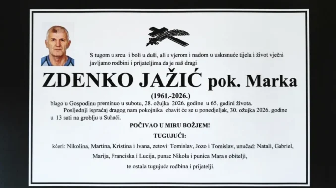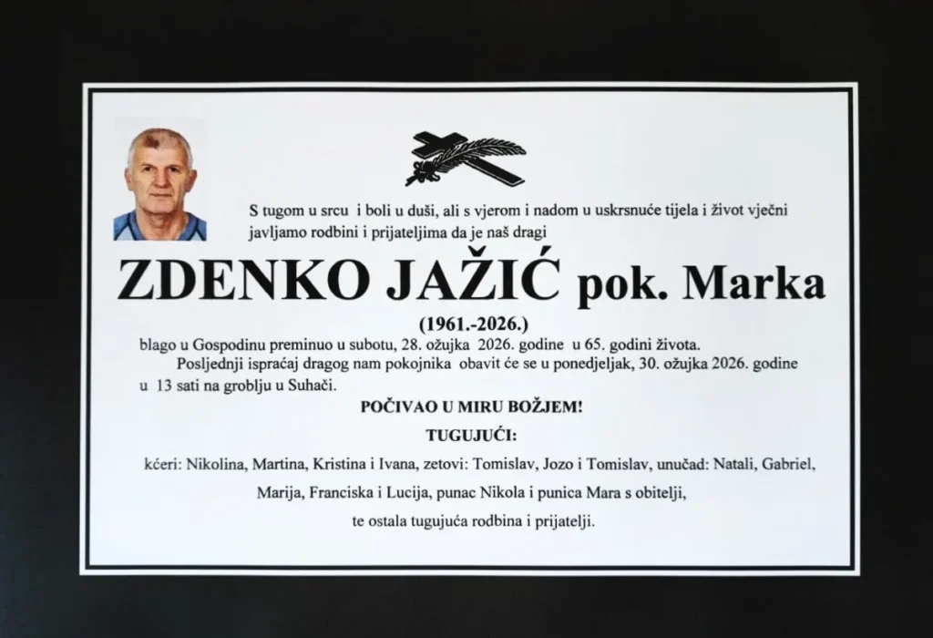 OSMRTNICA / Zdenko Jažić 29. ožujka 2026. ADMIN Livno 0 Vrtlarija Šarić Livno Tweet Share on WhatsApp(Otvara se u novom prozoru) WhatsApp