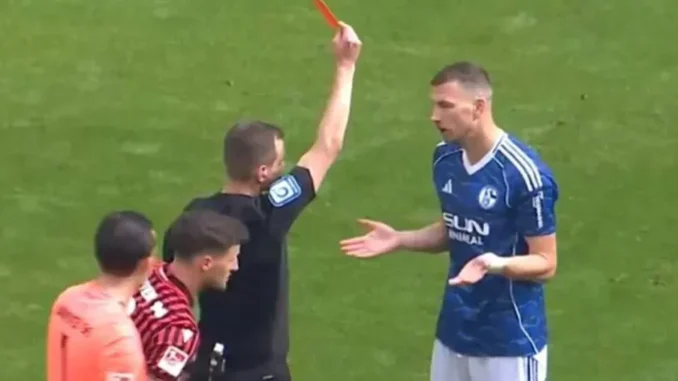 Napadač Schalkea Edin Džeko zaradio je danas izravan crveni karton nakon neopreznog starta nad protivničkim igračem u susretu protiv Hannovera.