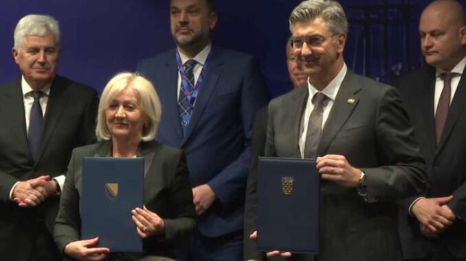 Sporazum su u Dubrovniku danas potpisali predsjedateljica Vijeća ministara BiH Borjana Krišto i premijer Republike Hrvatske Andrej Plenković u nazočnosti američkog ministra energetike Chrisa Wrighta